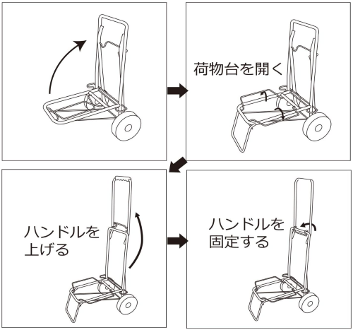 ※耐荷重制限をお守りください。本製品は運搬用です。それ以外(歩行の補助、乳母車、いす、踏み台等)の用途で使用しないでください。本製品は屋外レジャー用に収納性・携帯性を重視した製品です。業務及び日常使用などの頻度の高いご使用は避けてください。