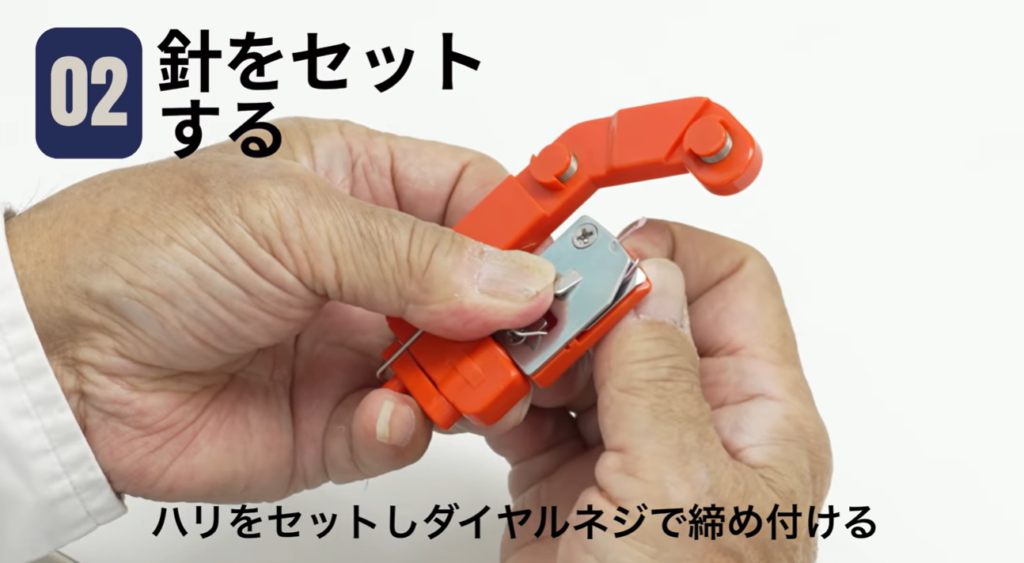 このとき少しでも緩んでいると糸を回しているときに針がズレるので、プライヤー等を使ってきつく締めましょう。