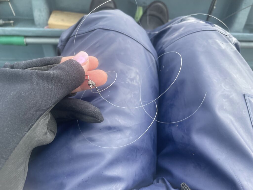 巻き上げてみれば、ハリスが無残にもスパッと切られている……。