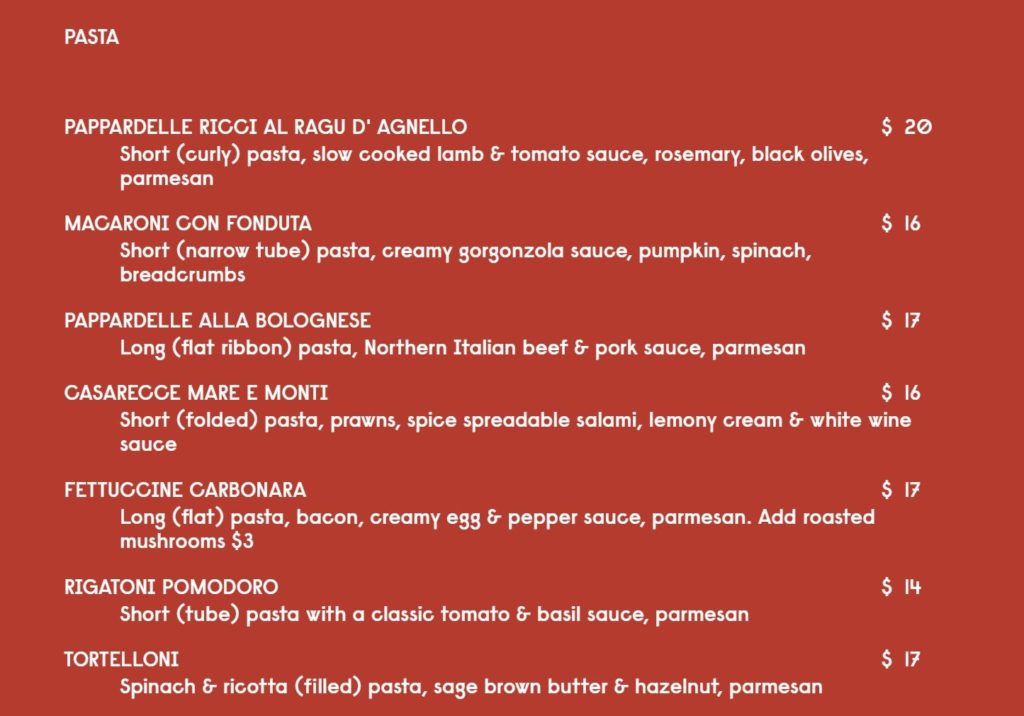 もちろんパスタ以外にも色々あるので、気になる人はこちらからメニューをご確認くださいませ!☟