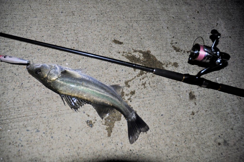 その後はいくつもアタリはあるものの、かけられず。しかし山川君と私で10匹以上のシーバスを釣った。途中からあまりにもシーバスがかからない(ルアーを見切ったらしい)ので山川君はヒラメ狙いでメタルジグを投げてたけど、結局釣れてなかった。アタリはあったらしい