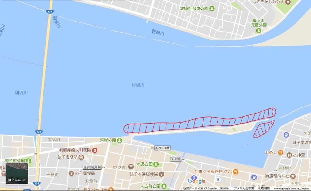 銚子には黒生漁港や外川漁港などたくさんの漁港、堤防があるがこの堤防はなんて名前なのだろう。とりあえず銚子第一漁港の外側の堤防。