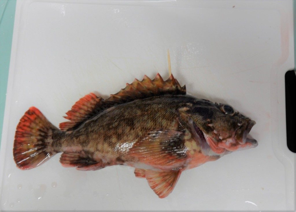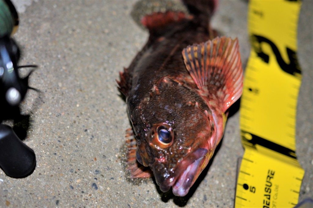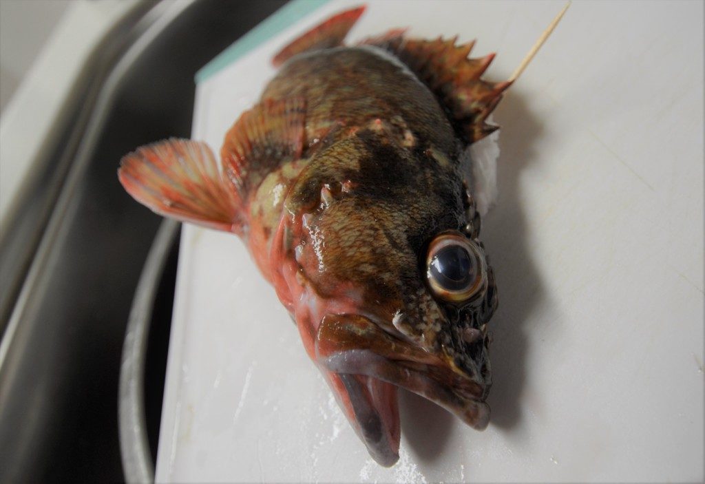 結局、最初に釣れたメバルとこのカサゴをお持ち帰りした。