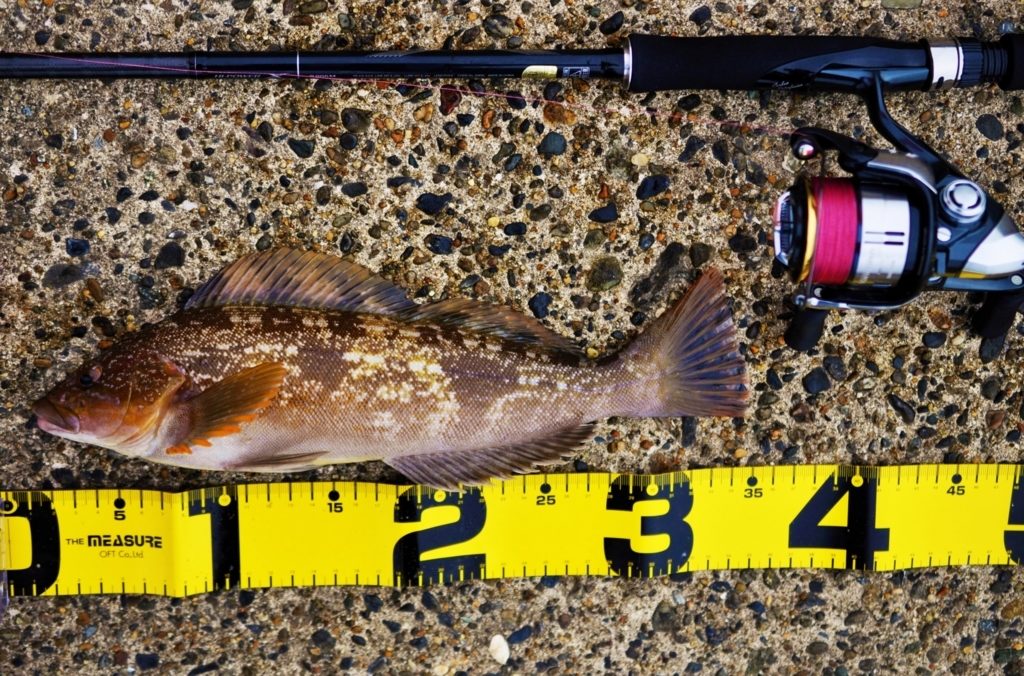 テトラポットの隙間に潜られそうになったりとヒヤヒヤしながら陸に上げた魚がこちら