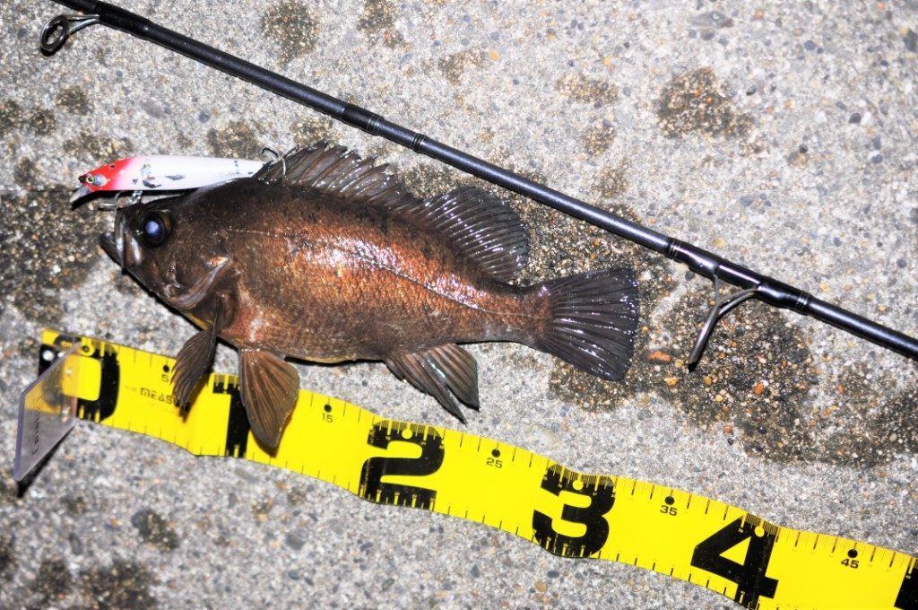 またもメバルっぽい引き。てか引きでどんな魚かなんてわかったことないわ。ましてや夜とか緊張感で脳がアレになってくるから推測不可能