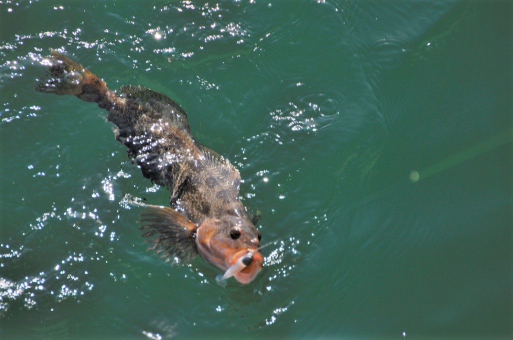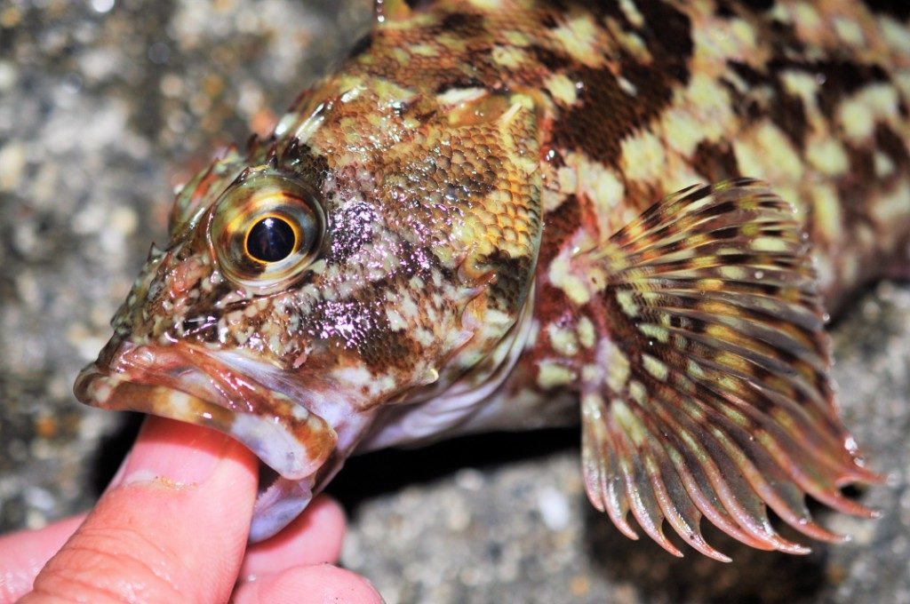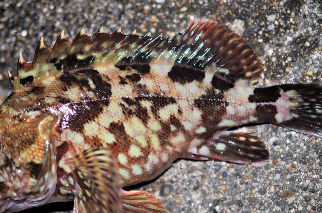 綺麗だったので少しの間 観察させてもらい、十分に堪能してリリース。というか返そうとしたら自分でピチピチと跳ねて海に帰られた。根魚って体力すごくない?