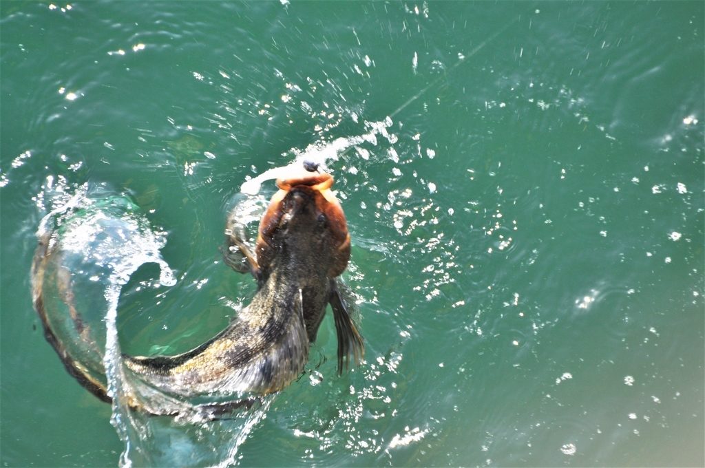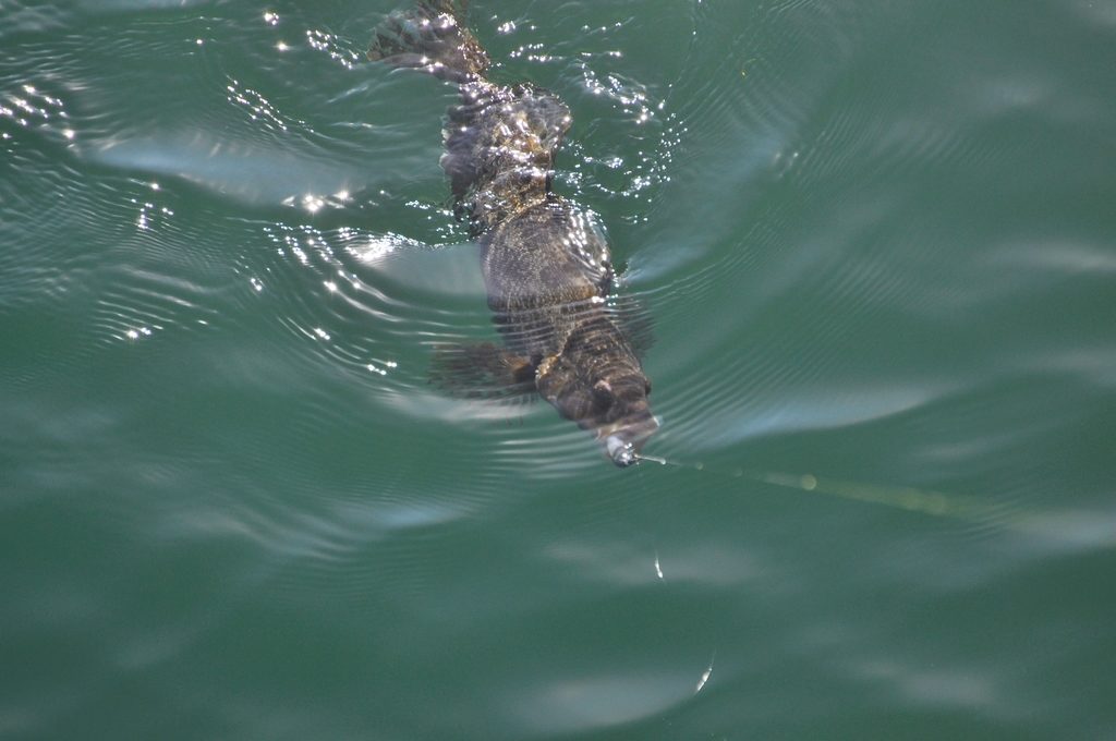 魚をかけたときは何の魚か分からなかったけど、水面にその顔が近づく