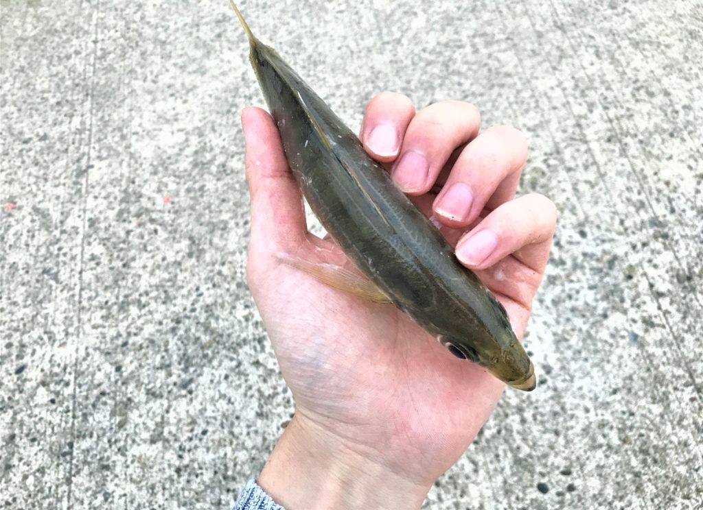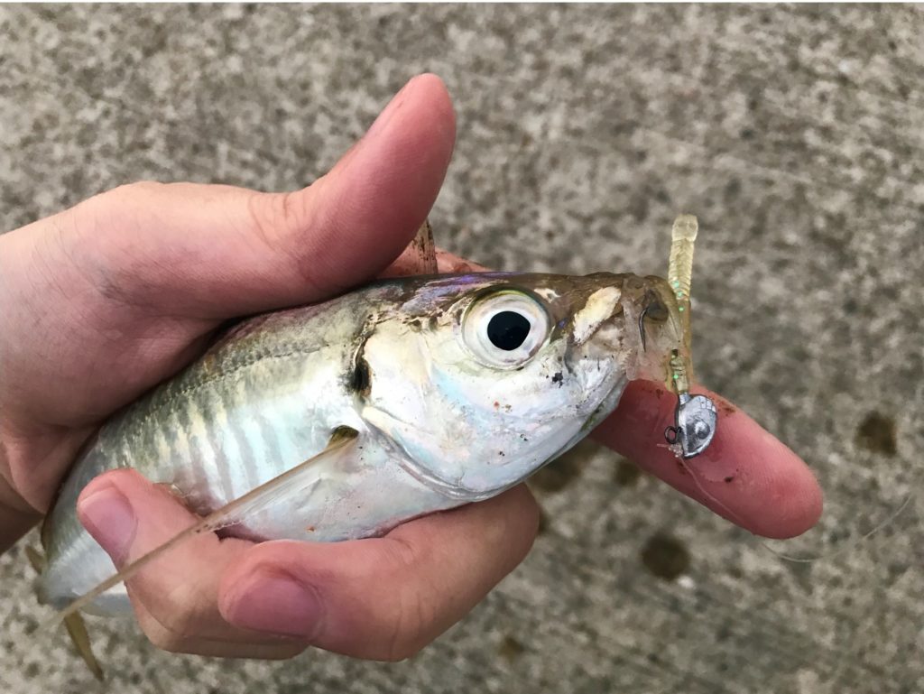 サビキの針が5本くらいあったからもっと房なりに釣れるのかと思ったけど、1匹だけ。ただ、同じくらいのサイズのメバルに比べてとんでもなく引いた。流石青物。