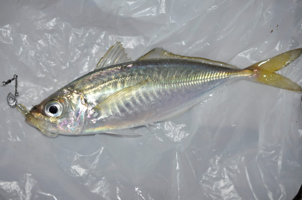 サイズはやっぱり20㎝前後。マメアジが釣れれば生き餌として大物を狙いたかったんだけど、15㎝以下はどういうわけか釣れなかった。