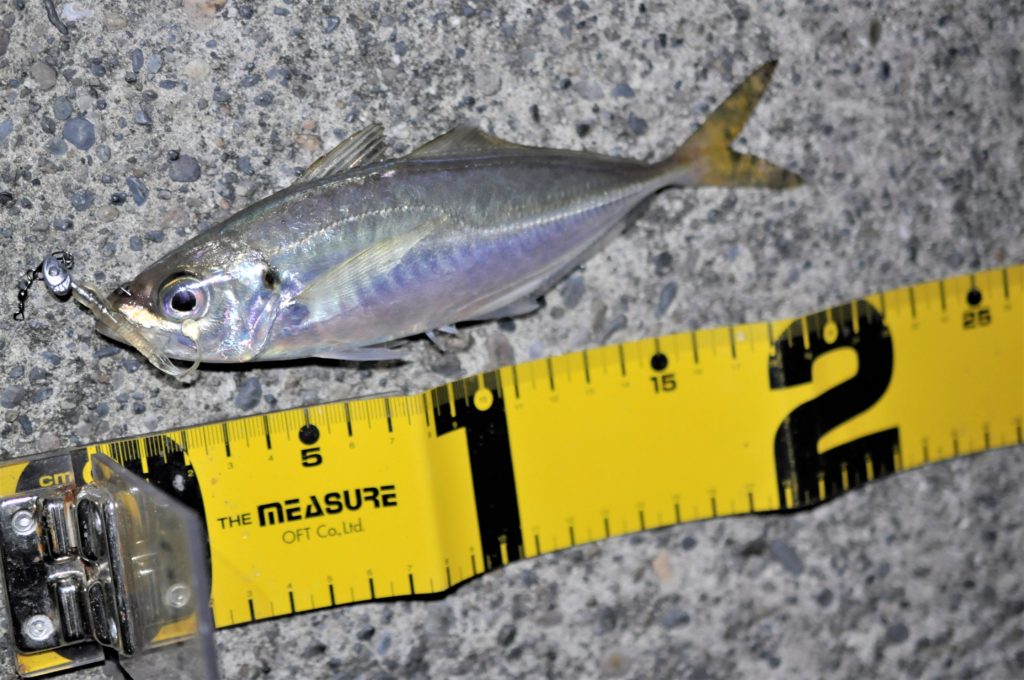 20㎝前後のアジ。この時期にしちゃあわりかし良いサイズだと思う。
