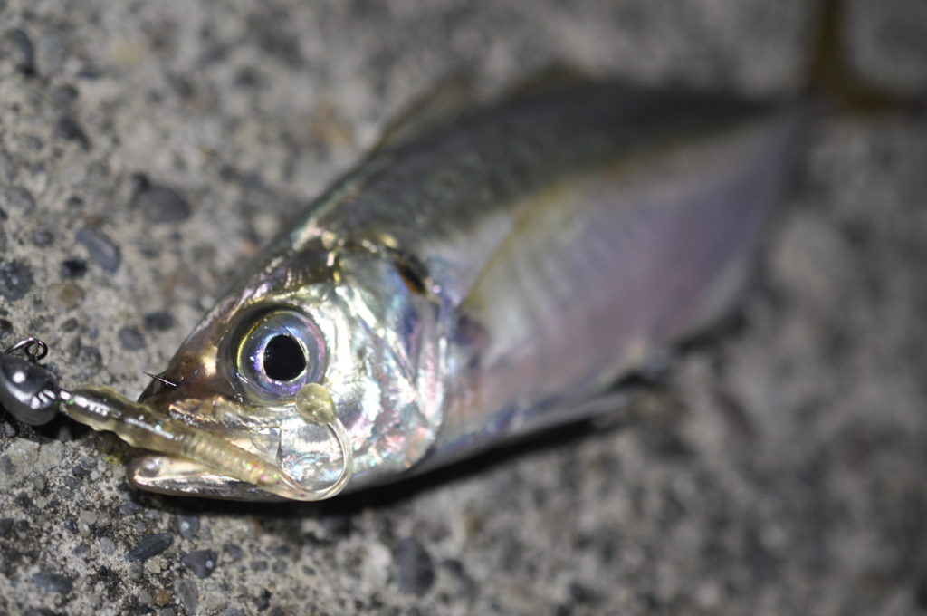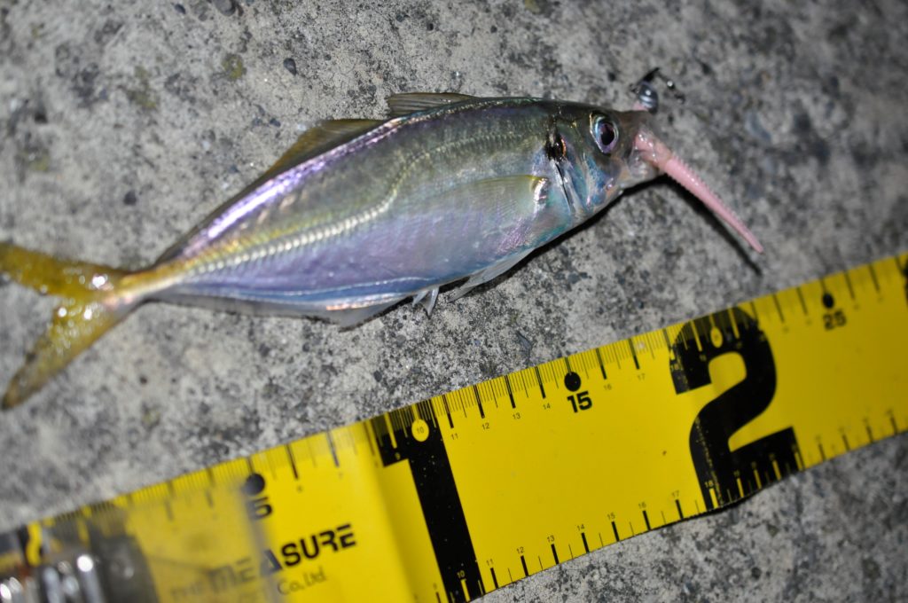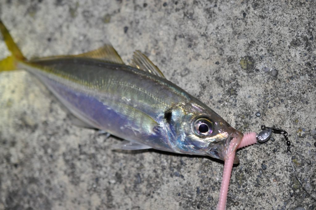 7匹釣ったところで、これ以上大きなアジは釣れない気がしたので、趣を変えて ワームを変えて狙ってみることにしてみた。