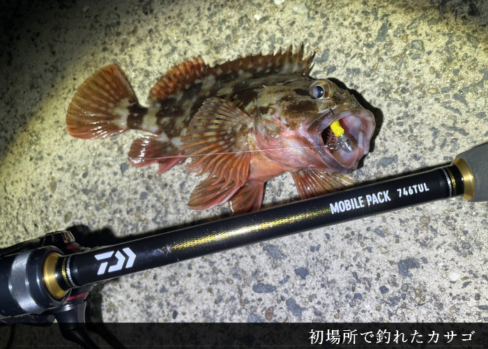 1g前後のジグ単を自由自在に扱えて、20㎝~25㎝程度の根魚なら心配なく抜き上げられるというのもモバイルパックの長所でしょう。