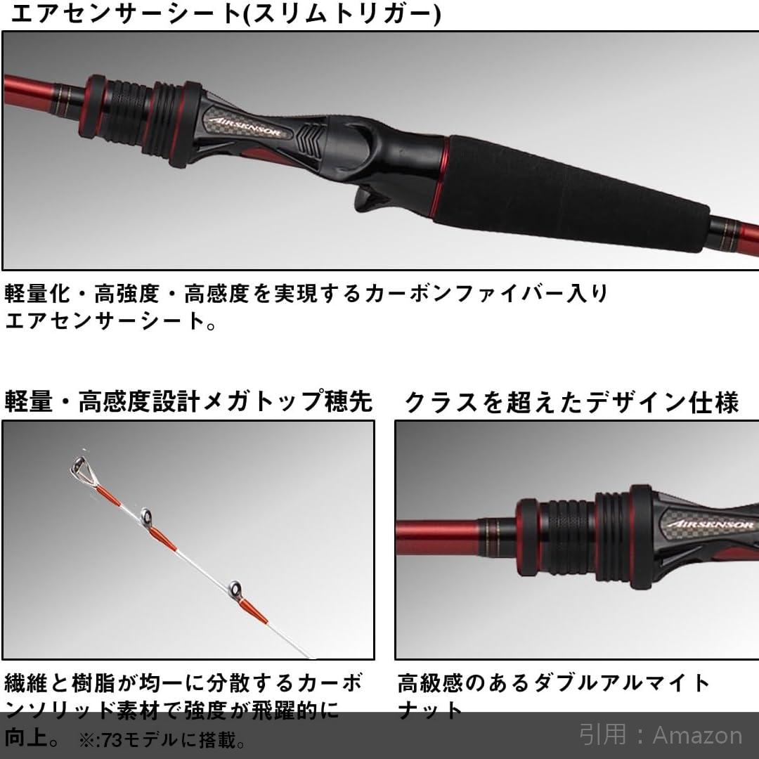 高密度カーボン「HVF」が強い魚の引きをしなやかに吸収し、急な突っ込みも難なくいなしてくれるので安心して使えるのもおすすめポイント。操作時はシャープでありながら、掛けてからは限界まで曲がり込む、安心感抜群の「強靭な腰」を体感できる仕上がりでした。
