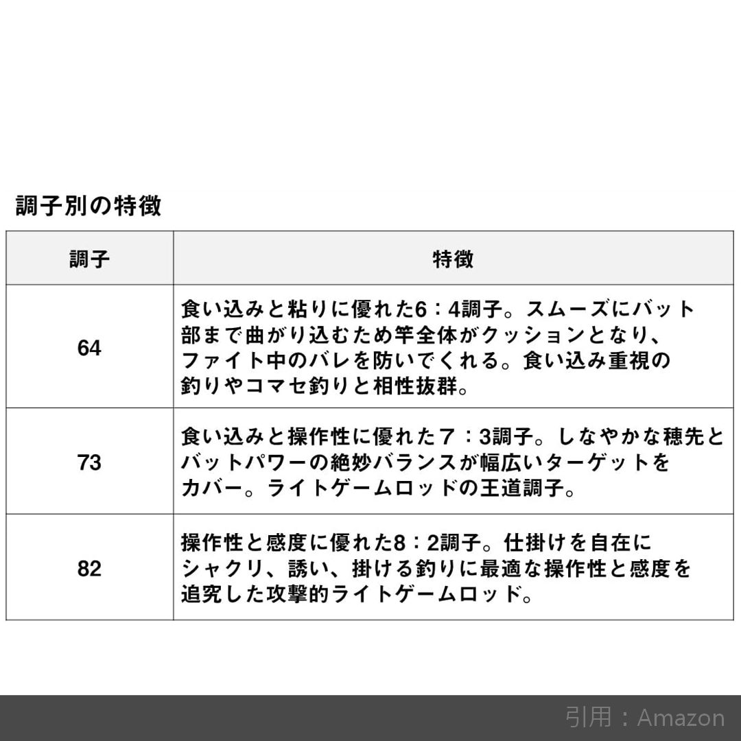 魚に餌を離させない「食い込み」の良さ。操作時は「先調子」のようなキレを、ヒット時は「胴調子」のような粘りを見せる感じが良かったです。
