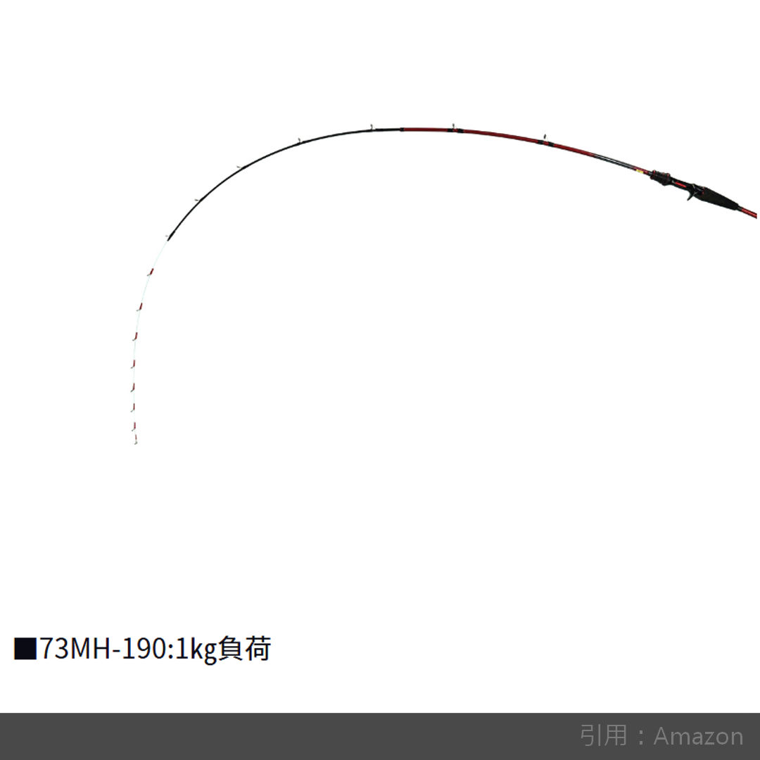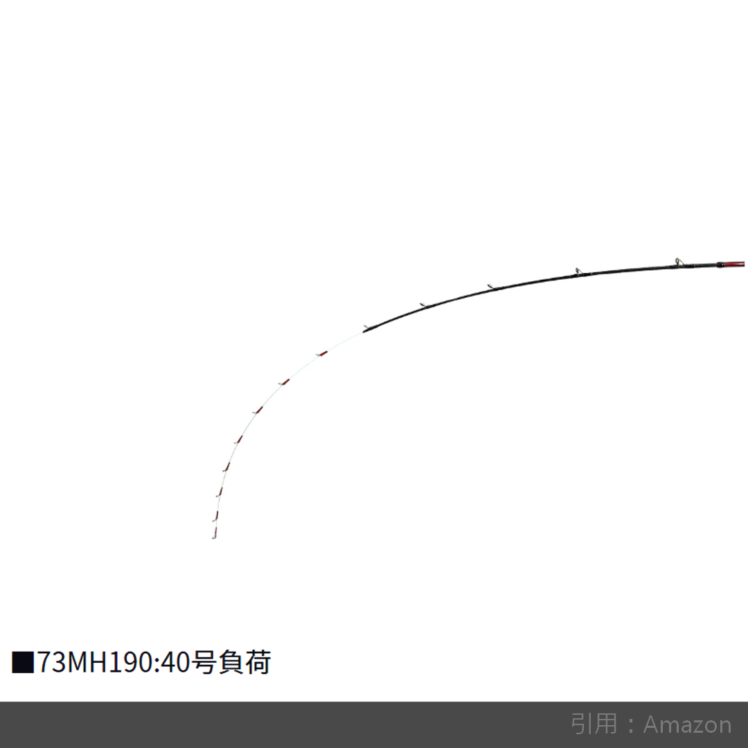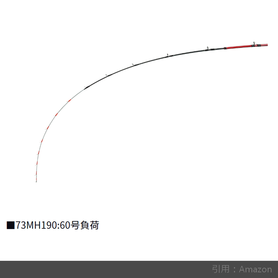 24アナリスターの73MH-190は、穂先から数えて3割程度の位置で曲がる設定であり、シャープな操作感で、タチウオの鋭いシャクリやアマダイの小突きも思い通りに演出できるぞ。