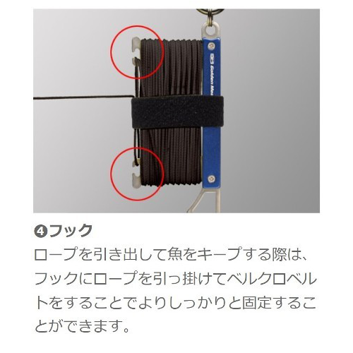 コンパクトで携行性に富んでいるSHIMANOのストリンガーです。一流ブランドの安心感もありますが、一味違うデザインのストリンガーに十分なロープ長さ、D管に吊るせるのが非常に便利でオススメです。サイズは2種類ありますが、青物のように引きが強い魚に使う方には『RP-212R』がおすすめです。
