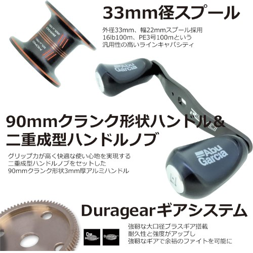 アブガルシアのフラッグシップ(最高級)モデルなのですが、ベイトリールだと比較的お手頃な価格帯になっています。。2022年発売の新モデルであり、キャスト性能(飛距離)などで高い評価を受けています。バス釣りの他、ボートシーバスやメバル、アジなどの多様な釣りモノに対応しています。