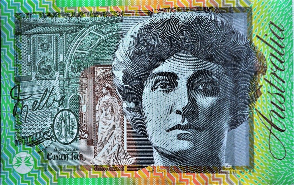 メルバは、ヴィクトリア朝後期から20世紀はじめにかけて、最も有名な歌手のひとりであった。また、クラシック音楽の音楽家として国際的な名声を得た、最初のオーストラリア人であったらしく、紙幣にはミュージカルの劇場のような場所も描かれている。