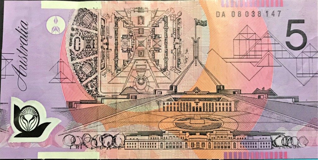 いくらバラエティに富むオーストラリアの紙幣といえど、5ドル紙幣のデザインはこれ以外にはないだろう。