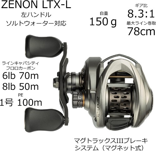 アルミフレーム採用でソルトに対応した、軽量ベイトフィネスリールです。自重は驚愕の141g。使用者の好みに応じて、マグネット数を増やせるマグトラックスIIIブレーキシステムを搭載しています。その軽さは異次元と形容され、装着する竿の感度や特性まで向上させてくれます。バスではベイトフィネスやミノーのトゥイッチング、シャッドのリトリーブ。海釣りではベイトフィネスから近年流行のボートアジングなど幅広い釣りに対応出来ます。