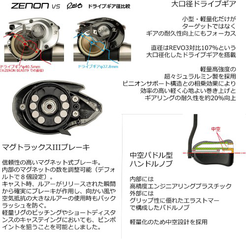 REVO史上最軽量の129gを実現したREVO LTX-BF8。ユーザーの好みに応じてマグネット数を増やせるマグトラックスIIIブレーキシステムを搭載。その軽さは異次元、装着する竿の感度や特性まで向上させるリアルフィネスとなっています。