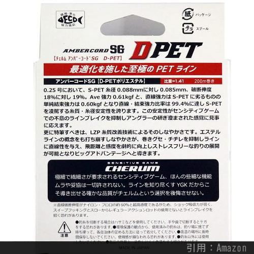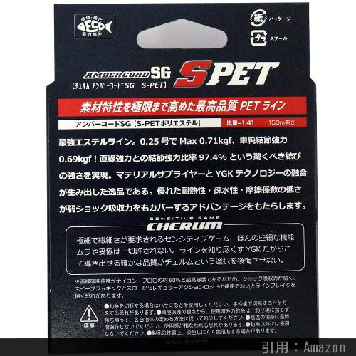 エステルラインの概念をも打ち崩すしなやかさが特徴的なYGKのエステルラインです。巻きグセ・チヂレを抑制しラインに直線性を与え、飛距離と感度を劇的に向上しストレスフリーな釣りの展開が可能になります。Ave強力0.61kgfと、直線強力はS-PETに劣るものの単純結束強力は0.60kgfとなり直線・結束強力比率は99.4%に達しS-PETを凌駕する、糸質・糸径安定性も◎。