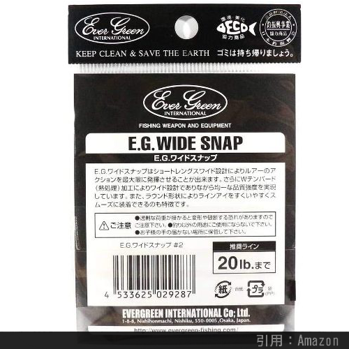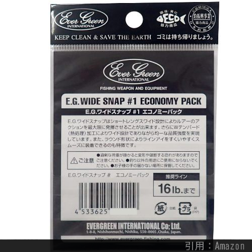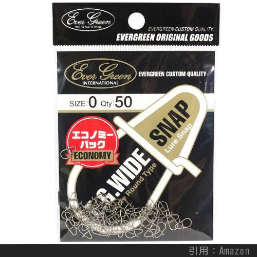 脱着を繰り返しても変形し辛い可塑性の低い鋼線が使用されているエバーグリーン『ワイドスナップ』です。可動部が広いので、プラグなどに使用してもルアーの動きを阻害せず、軽量です。ライトゲームには#0、もしくは#00がおすすめです。突然の大物にも余裕を持ってファイトしたい方には#1が良いでしょう。