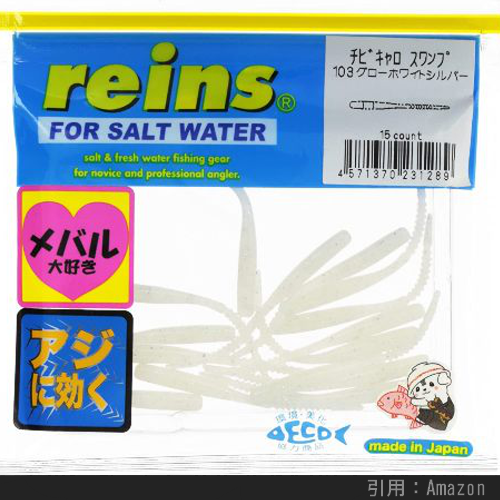 テール部の水絡みもよく、微振動も健在なチビキャロスワンプです。やや耐久力が低く、尺アジに千切られることも多いソフトルアーですが、その分 着脱が簡単だったりとアジングビギナーにおすすめかもしれません。また50㎜サイズは15本入りだったりと、コストパフォーマンスが高いところもおすすめです。
