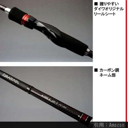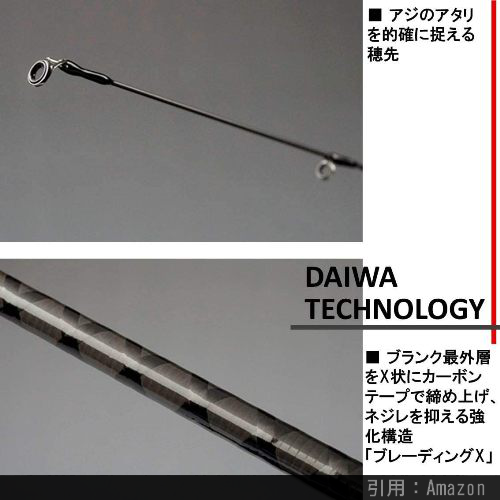 DAIWAの看板ロッドシリーズ『月下美人』の廉価版です。しかし、性能は流石はDAIWA。目に見えないロッドのネジレを抑制してパワーと操作性を向上させる「ブレーディングX」にダイワオリジナルリールシート、上位機種にも引けを取らないデザインなど、仕様も充実しています。キャストルアーの重さは0.5~8g。アジングで良くキャストする1~2gのルアーが投げやすいこともあり、特に初心者にはおすすめのアジングロッドです。