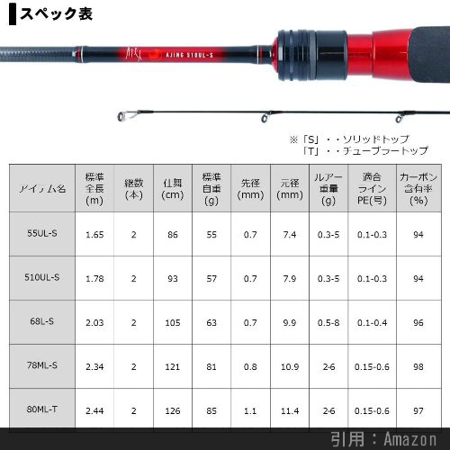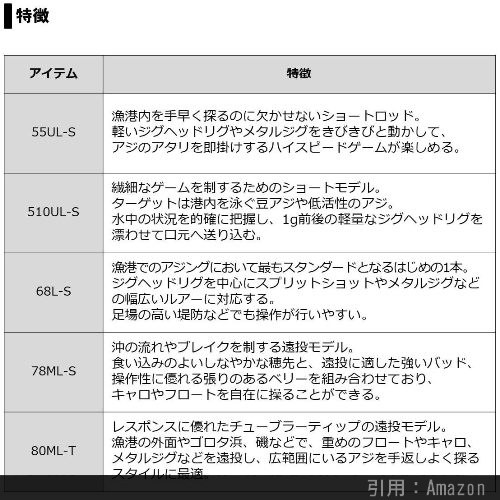 『55UL-S』も良いでしょう。遠投性能が落ちる分、感度柔らかさが良く、アジの引きが強烈に感じられて楽しいです。