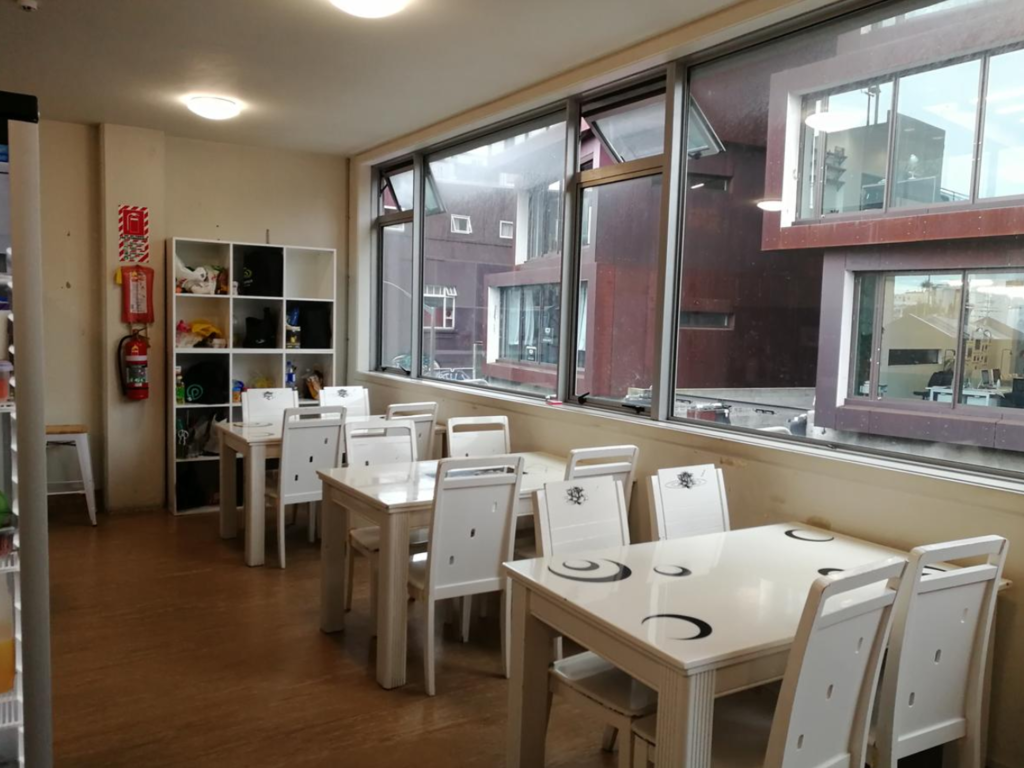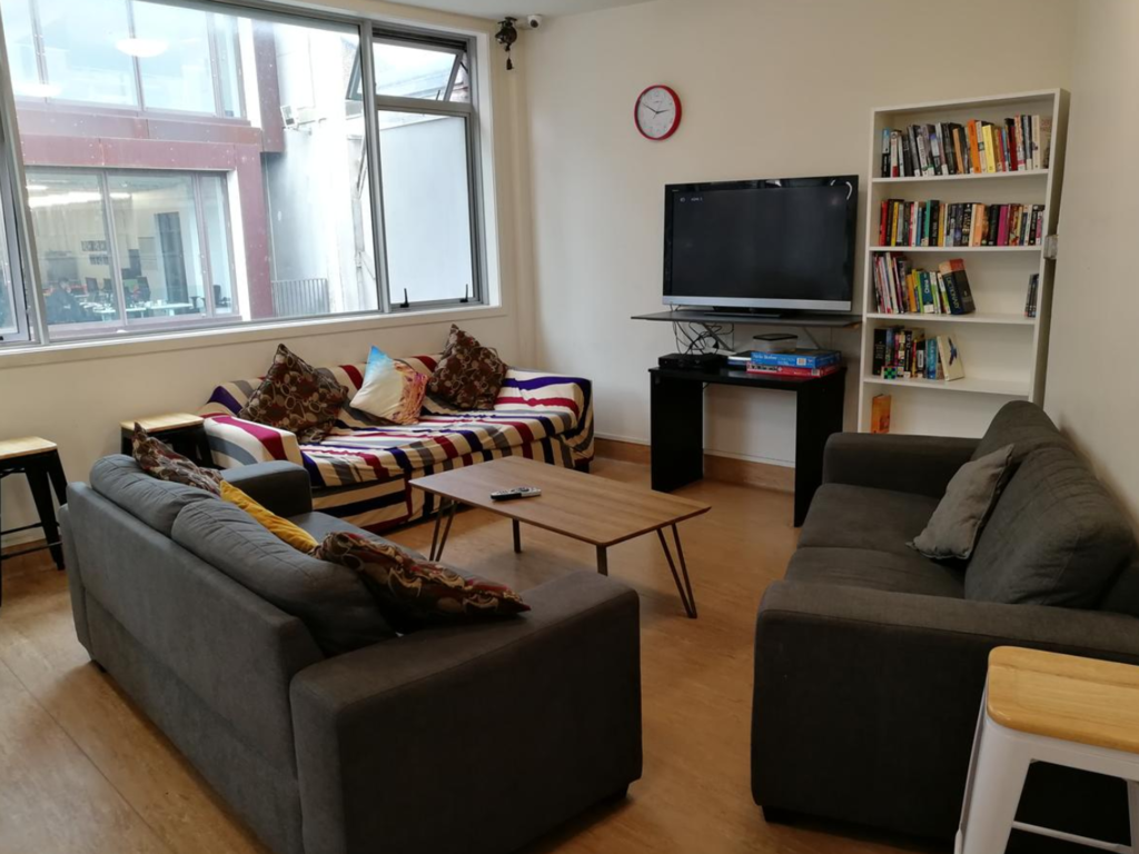 安いバックパッカーズ宿だと、共有スペースがない、ということがザラにありますが、Newton Lodgeでは上の画像のように、綺麗に整理整頓された共同スペースがあったので助かりました。ちなみに、この記事も現在、その共同スペースで執筆しています。右のソファーに寝転がって執筆しています。