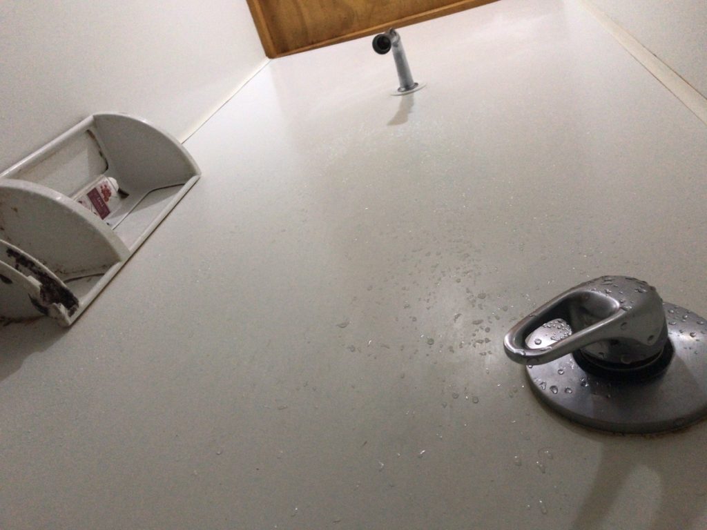 シャワールームには勿論 コンセントはなく、かといってドミトリールームでドライヤーをかけるわけにもいきません。仕方ないのでシャワールームの前に設置されていた洗面台の下にあったコンセントを使ってドライヤーをしました。廊下に設置されている洗面台なので、人が通るときは少し恥ずかしかったです。