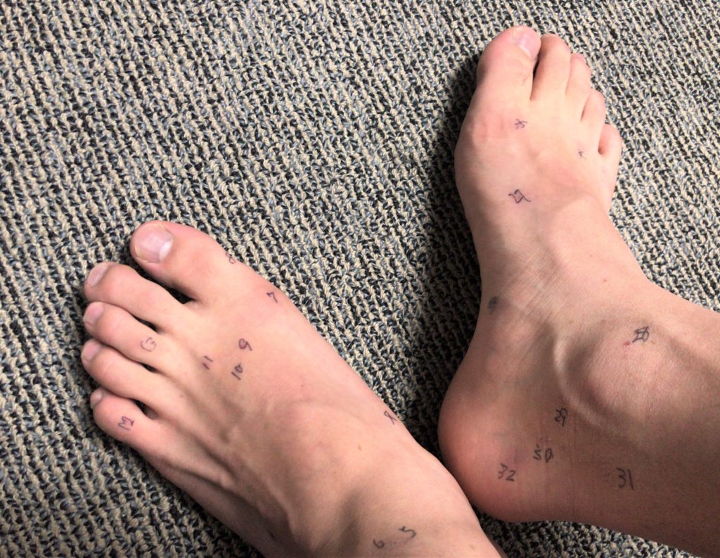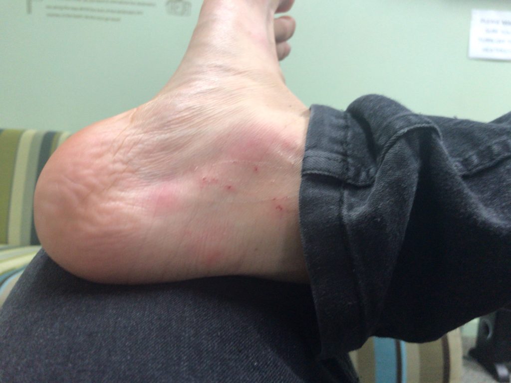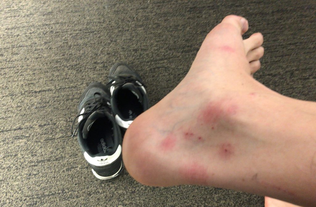 両足で54カ所に及ぶことが確認できました。最も噛まれた箇所は足首付近でした。それ以外の部位はポツポツと噛まれた程度で腕、背中、股関節回りをすべて合わせても25カ所程度でした。