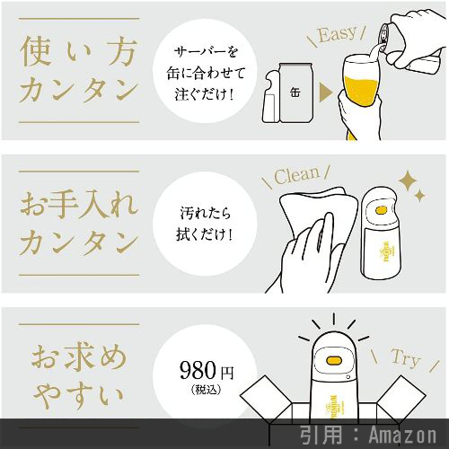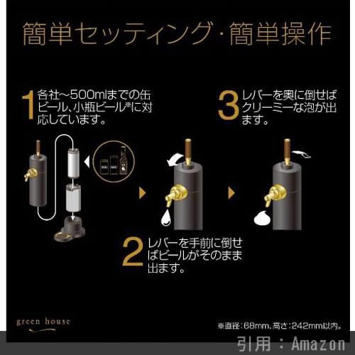 価格も炭酸ガス式に比べて安価。手軽に美味しいビールを飲みたい方におすすめ。