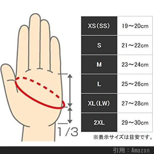 自分の手に合ったサイズを選びましょう。
