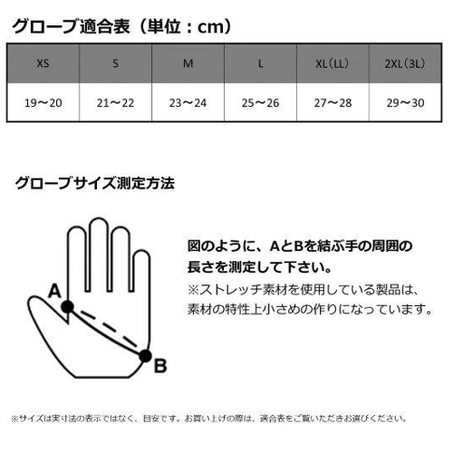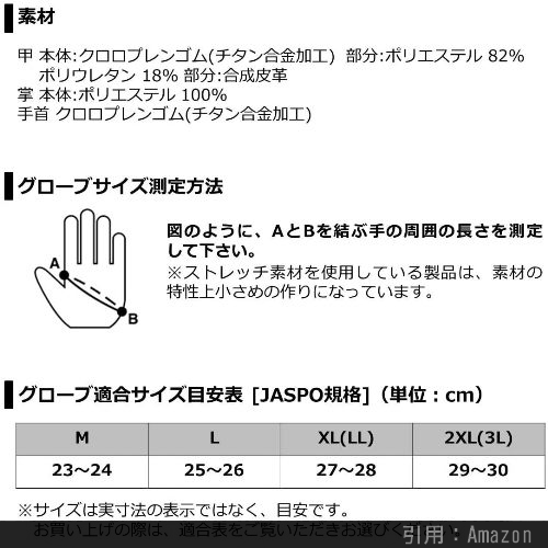 材質 [表]ナイロン100%[裏]クロロプレン合成ゴム 掌:合成皮革 部分:人工皮革、合成皮革