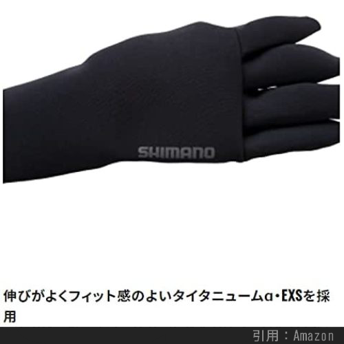 断熱保温性の高いタイタニュームα・EXSを使用したSHIMANOの防寒フィッシンググローブです。保温性だけでなく、手にぴったりとフィットすることで防水性も高く、肌触りが良く着脱も用意な「パールフィット加工」も魅力的です。グローブの丈も袖口を上からかぶせられるように長めに取られており、袖口からの冷気の侵入も防止します。