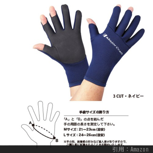 密着性を保つことによって保温・断熱効果が増すフィッシンググローブ等もあったりします。DAIWAやSHIMANOなどの一流釣具メーカーになると、細かなサイズ選択が出来ます。ちょっと面倒ですが、自身の手のひらを計測して選ぶと失敗が少ないです。