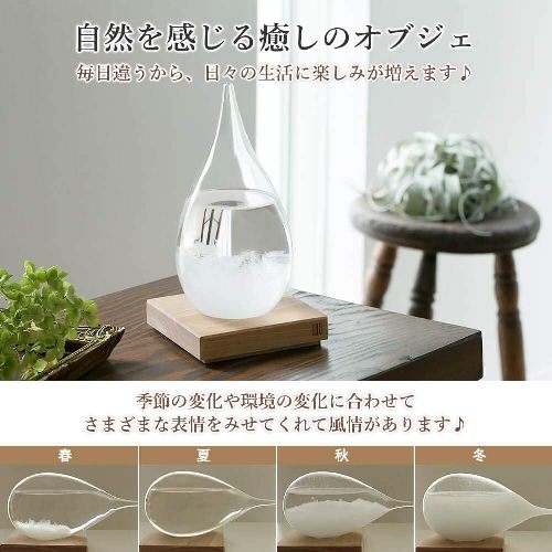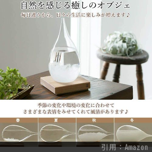 特に気温の変化に反応するストームグラスです。屋外の最高気温18℃くらいから結晶が増え始めるようで、白い羽毛のような結晶が光に反射して小さなプリズムを見せてくれるのでとっても綺麗。筆者は子供の頃にカブトエビを飼育していて一時期 生物に超ハマっていましたが、ストーングラスを見ていたら科学にハマっていたのかもしれません。