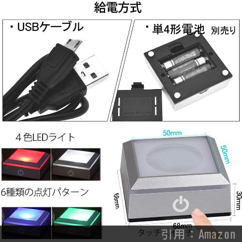 →白、赤、青、緑が四つの基本色。一色だけでなく、鮮やかなグラデーションで光らせることもできます - ナイトライトとしても使える汎用性