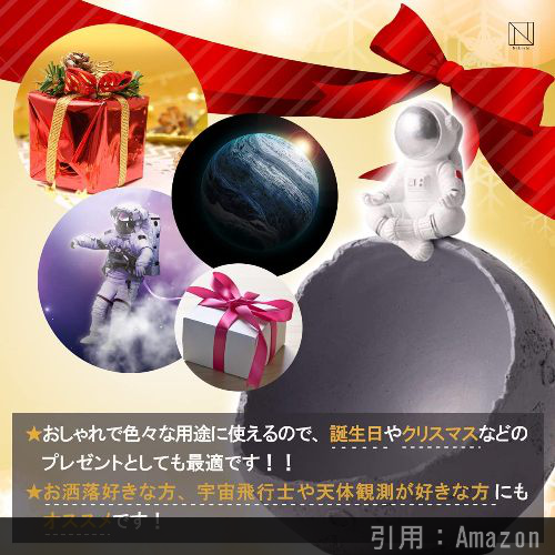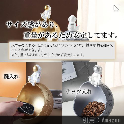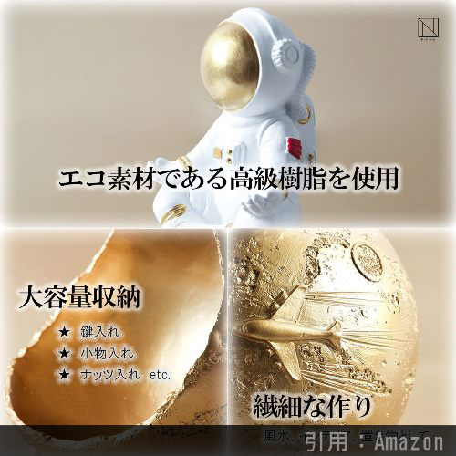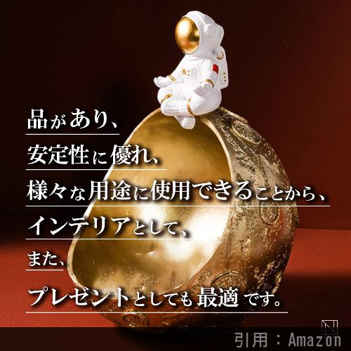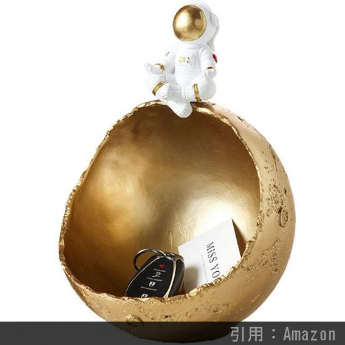 玄関前のアイテムとして最適、宇宙飛行士が可愛らしいインテリア・小物入れです。風水による運気アップは分かりませんが、月の模様などは細部までこだわりが感じられます。実用性も高いので、天体好きのプレゼントとしておすすめです。