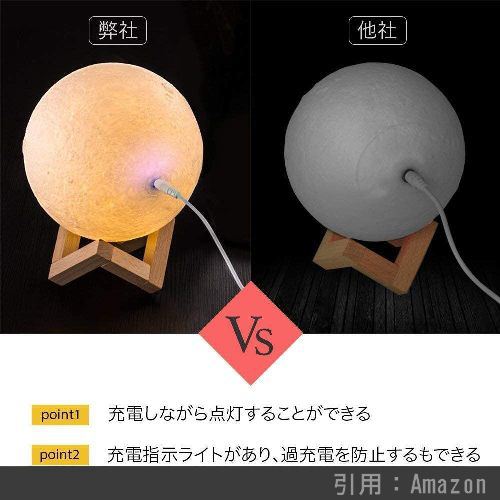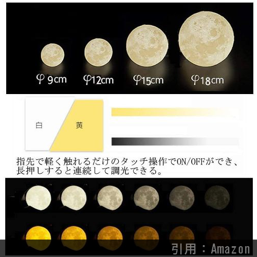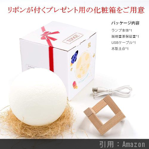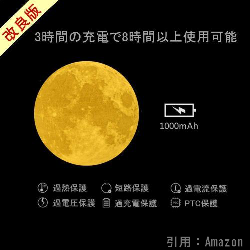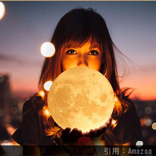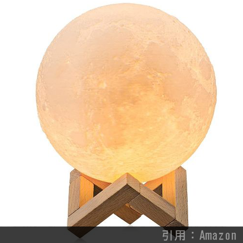 宇宙・天体好きには勿論、そうじゃない人にもおすすめの月型間接照明です。お部屋の雰囲気に優しさや温もりを与えます。調光は無段階で、純白から柔らかい黄色まで調節できます。3時間の充電で8時間使用が出来るなど、機能性も抜群。プレゼントに最適な月ライトです。