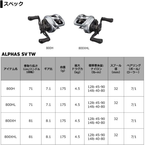 | ナイロン糸巻量(lb-m) | 14-30~60 12-35~70 |