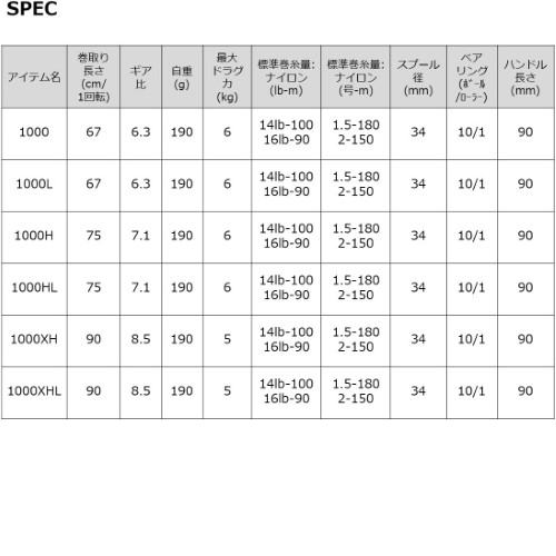 | ナイロン糸巻量(lb-m) | 14-100 16-90 |