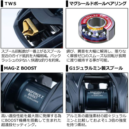 2022年発売の、近距離から遠投まで万能にこなすスティーズA TWの第2世代モデルです。新開発φ34mmG1ジュラルミン製超高精度MAG-Z BOOSTスプールを搭載。スプールの立ち上がりが向上し、タフフィールドで要求される実践的なキャスト性能が魅力の1台と仕上がった。高負荷でも滑らかかつハイパワーな巻きを実現。高い耐久性能も素晴らしいですね。