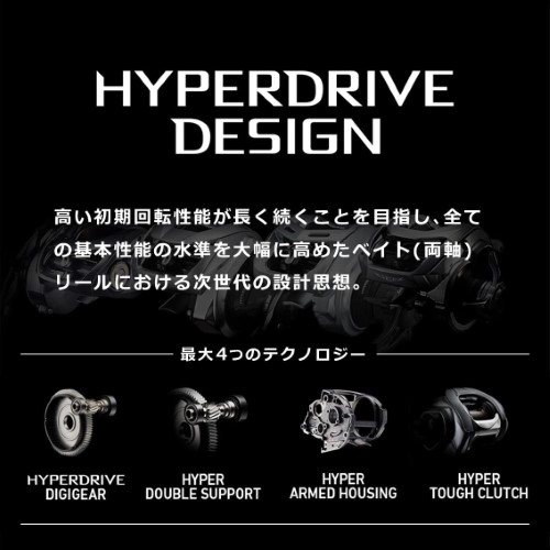 よく飛び、コントロール性が上がり、フォールも速く、バックラッシュが少ないというTWSが搭載されており、ロングキャスト性能を極めた2022年発売のジリオンTW HDです。高強度真鍮をドライブギア、高耐食銅合金をピニオンギアに採用した新たなHYPERDRIVE DIGIGEAR搭載で、強く滑らかな回転を実現し、HYPER ARMED HOUSING(FULL AL)でコンパクトながら、強靭なボディ剛性を実現。