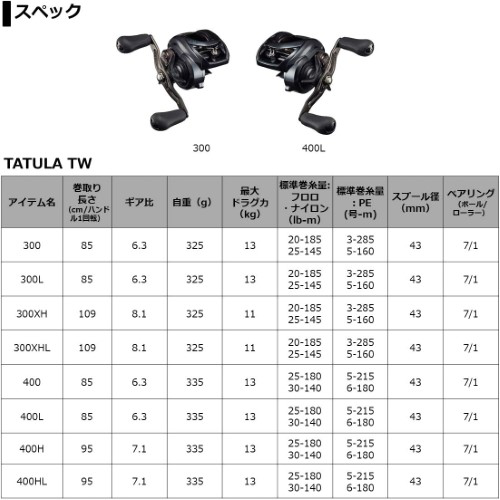 | ナイロン糸巻量(lb-m) | 8-50~100 10-40~80 |