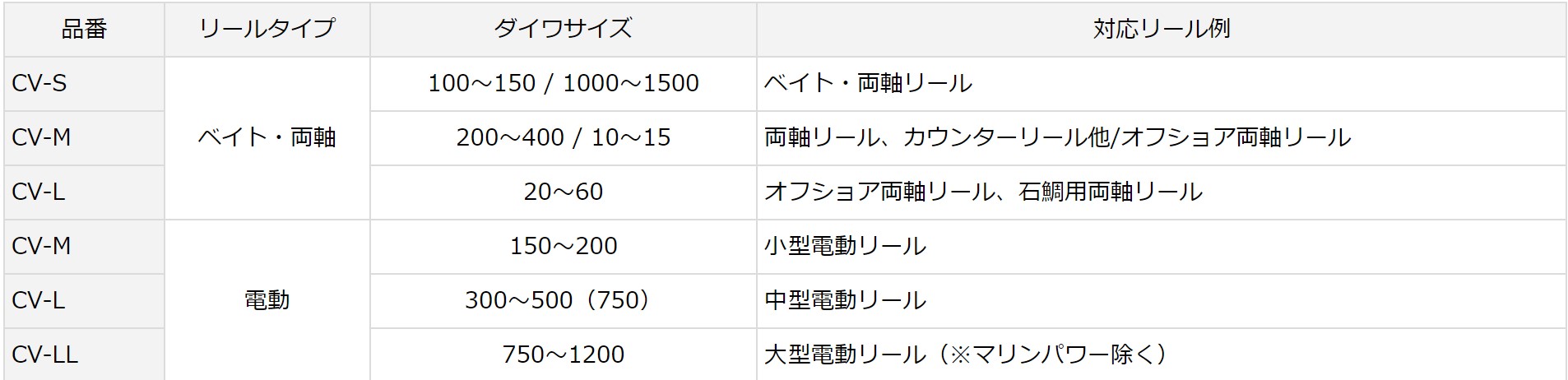 ベイト・両軸・電動リールに適しているのがCVタイプです。
