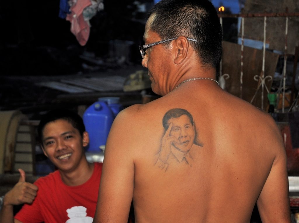 背中には彼の敬愛するドゥトルテ大統領が彫ってあった。アイドルとかアニメキャラとかを掘っている人はたまにTwitterで見たことがあるけど、国の大統領を掘っている人は初めて見た。ドゥトルテ大統領ってすげー