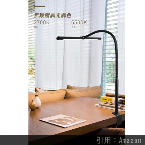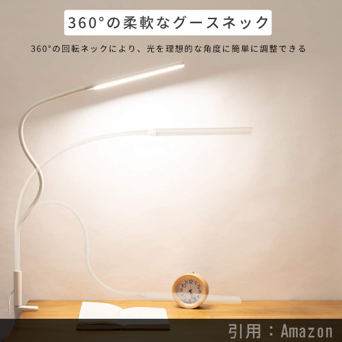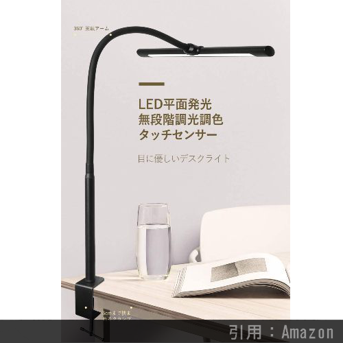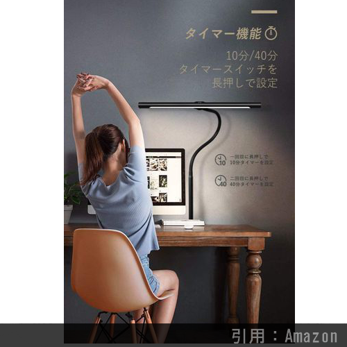 タイマー機能を搭載したクランプ式のLEDデスクライトです。小休止、または電球色・照度を落としてタイマーをかけることによって自動消灯の間接照明として使えたりする汎用性があります。Amazonチョイスに選ばれていることもあり、信頼できるLEDデスクライトです。